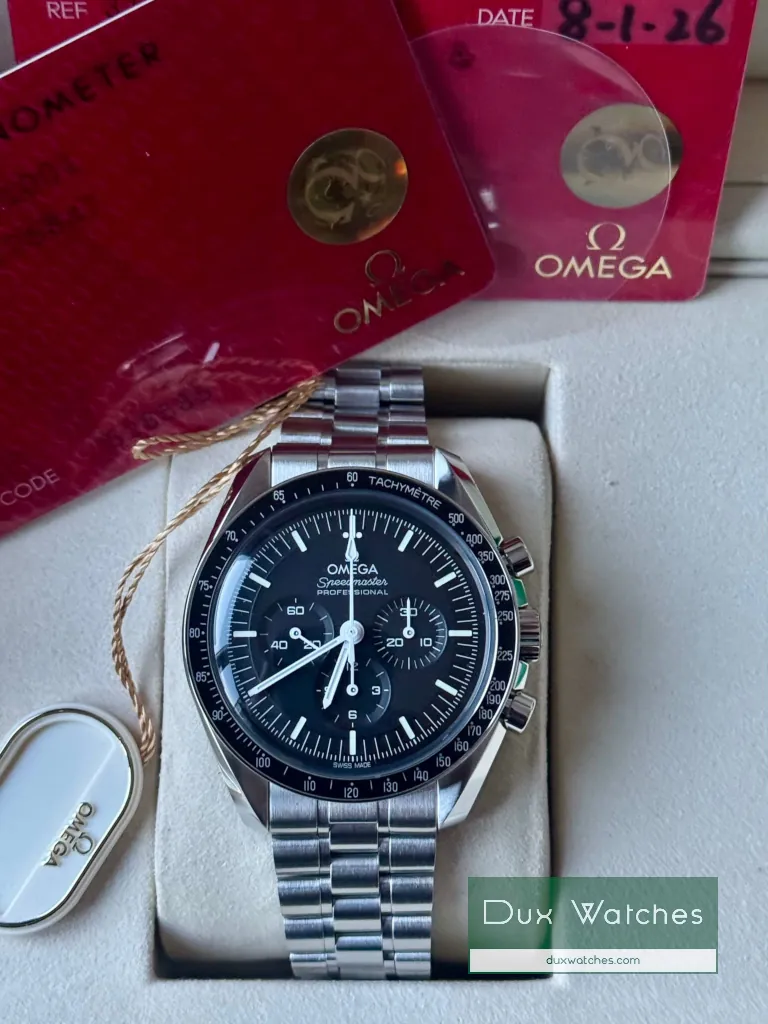 Via Chrono24 bij Dux Watches uitgekomen voor een ongedragen Omega Speedmaster. Mijn oude Omega De Ville heb ik hierop ingeruild, waar ik nog een mooie prijs voor kreeg (bandje versleten en uurwerk had service nodig). Het was aangenaam kennismaken met Martijn en Björn (relaxed, geïnteresseerd, goede communicatie en professioneel) en het is dus ook een aanrader om eens een bezoekje te brengen aan de heren als je op zoek bent naar een mooi horloge voor een scherpe prijs.