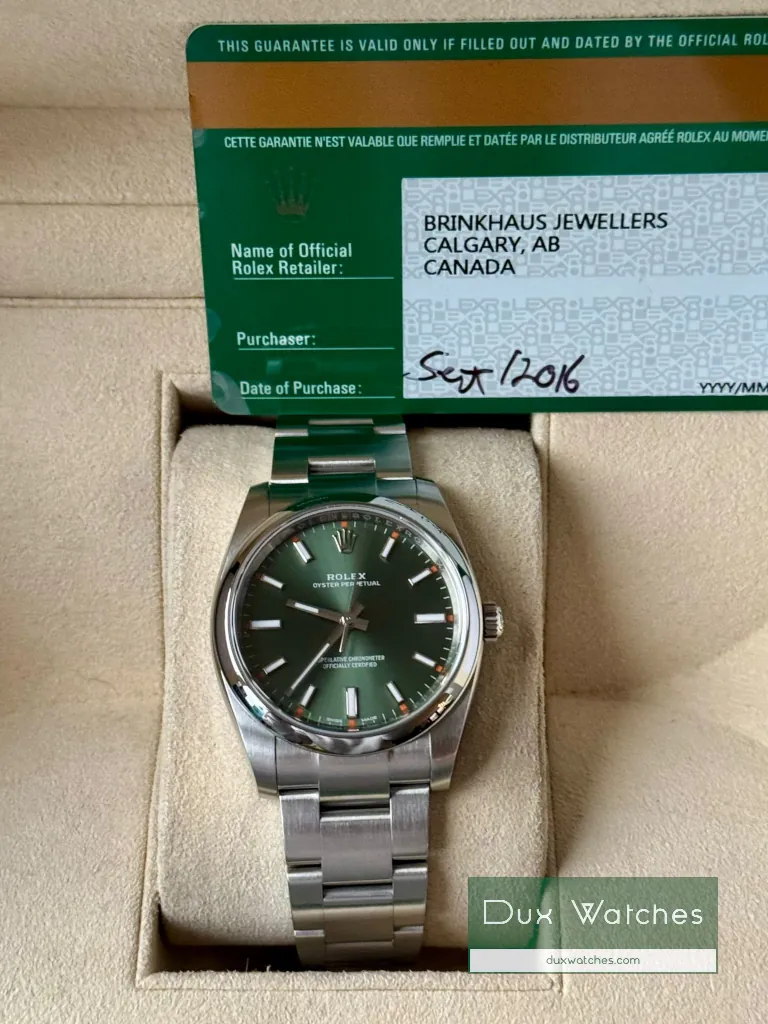 | Model | Oyster Perpetual 34 "Olive Green" | ||||||||||||||||||||||||||||